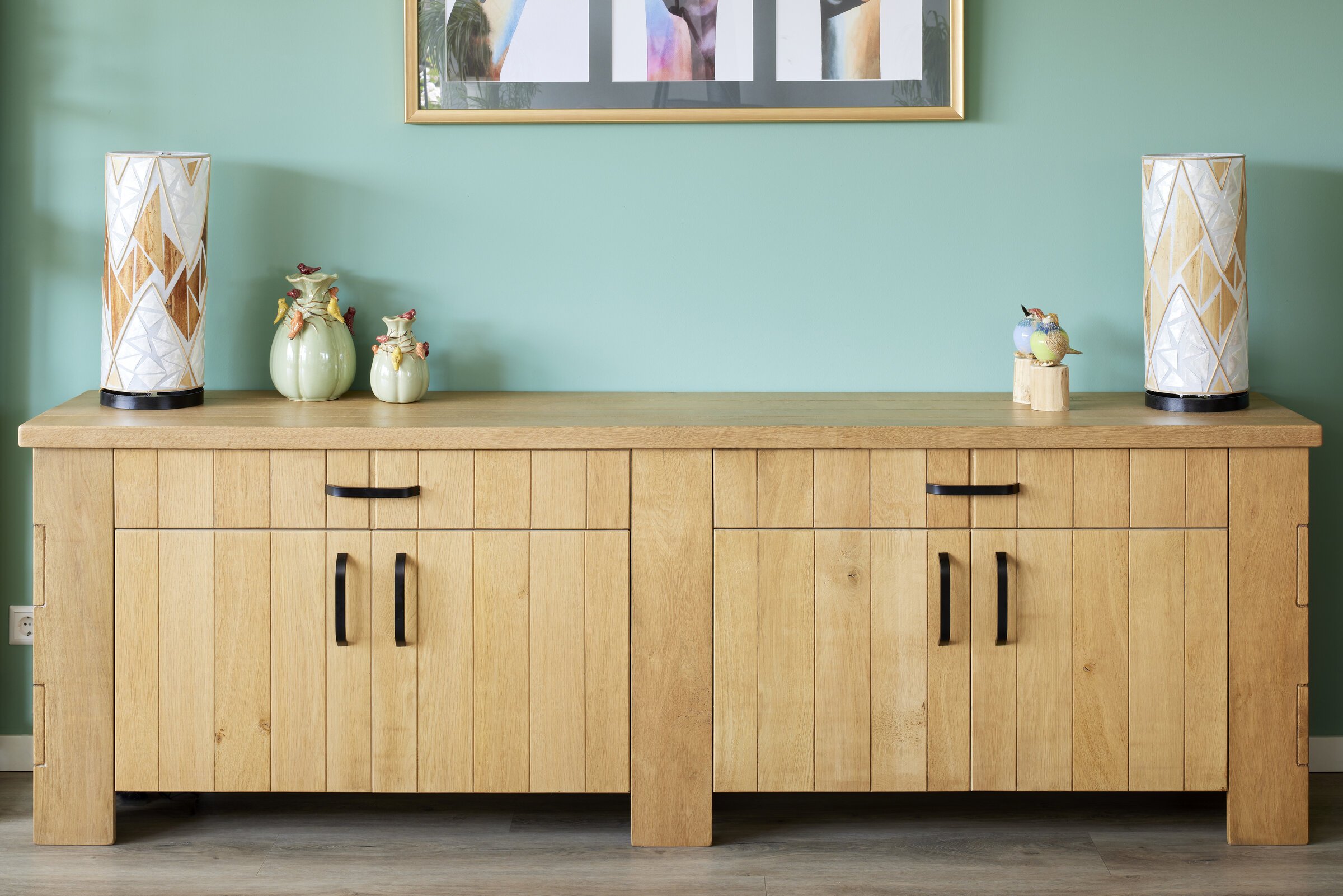 Verrijk uw interieur met onze op maat gemaakte massief eikenhouten dressoir en bijpassende buffetkast. Beide meubelstukken pronken met vakmanschap, zoals te zien aan de ambachtelijke halfhouthoekverbindingen en massieve deuren. Onze uitzonderlijke hang- en sluitwerken bestaand uit soft-close systemen zorgen voor een moeiteloze en geruisloze bediening van deuren en lades. De robuuste stalen handgrepen vormen een perfect contrast met het warme hout, terwijl de beschermende blanke lak het hout conserveert en de natuurlijke schoonheid accentueert. Laat Menno Middelkoop Amstelhoek u meenemen op een reis naar het ambachtelijk vakmanschap.